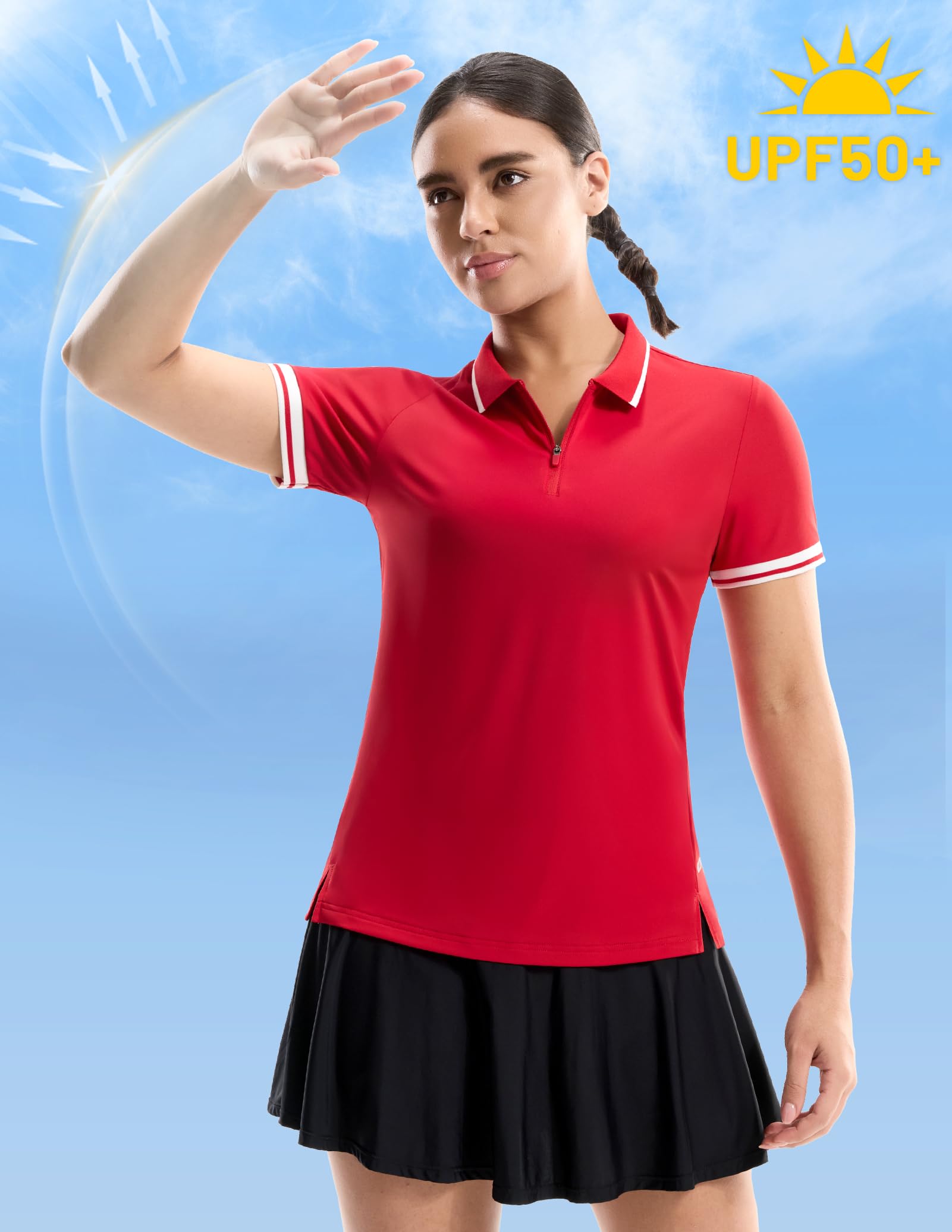 MIER Golf Polo Shirts for Women - 1/4 Zip Up Short Sleeve Tennis Tops, Dry Fit UPF 50+ Athletic Collared Shirt for Pickleball