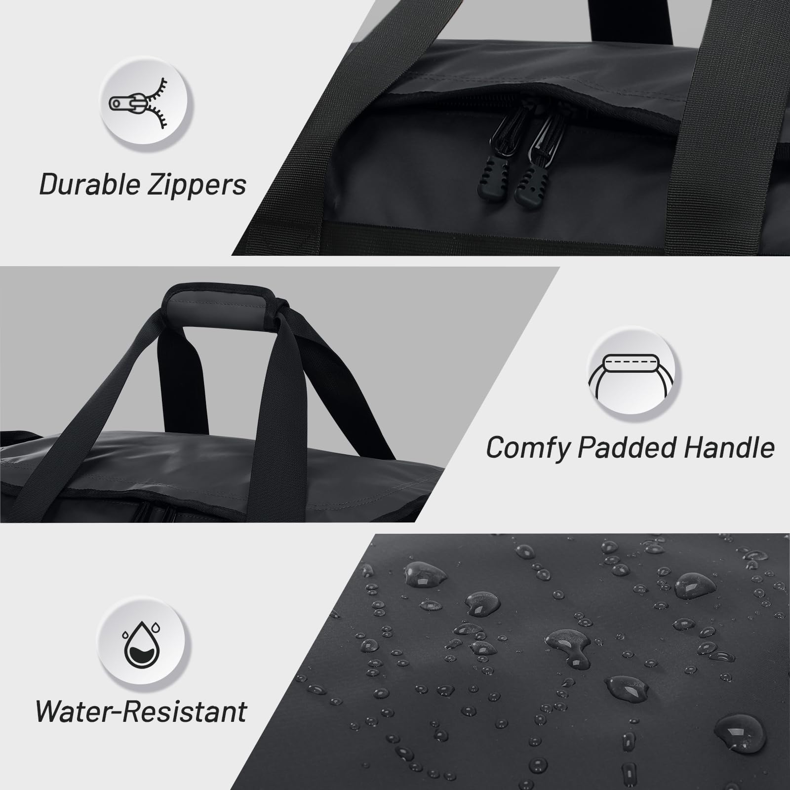 - DURABLE & WATER-RESISTANT: Made from heavy-duty tear and water-resistant tarpaulin, the gym duffel bag features a reinforced double bottom and strong stitching to ensure long-lasting durability for daily use