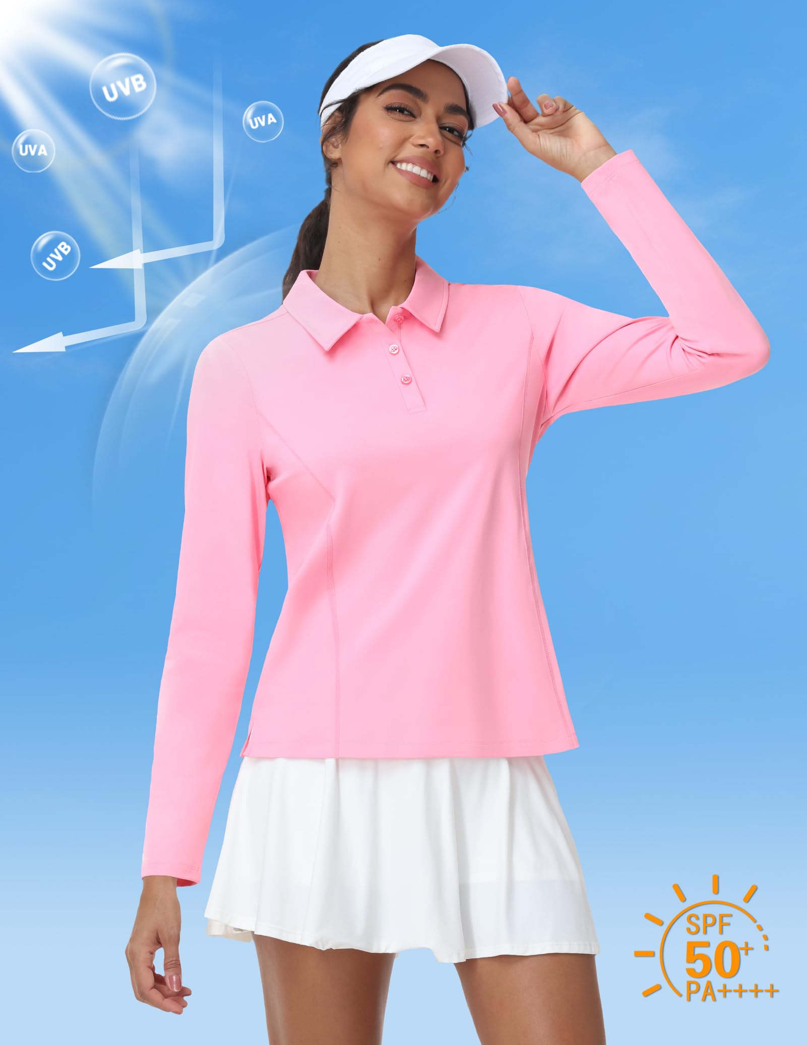 MIER Long Sleeve Polo Shirts for Women Quick Dry Collared Golf Tops for Athletic Tennis Work, Inherent UPF 50+ Sun Protection