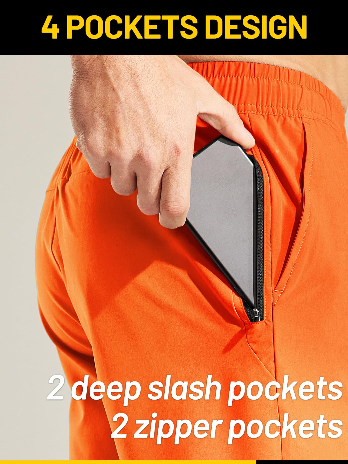 - High Stretchy --- 4-way stretch water-repellent fabric and flat front with NO liner design for a full range of motion and comfort, letting you move freely. Sturdy quality stitching makes sure the athletic shorts stay soft and durable wash after wash